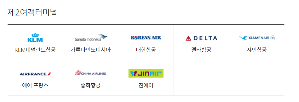 간단하게는 내 항공사가 인천공항 제 2여객터미널에 해당여부만 보시면 됩니다.