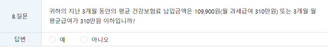 - 국민건강보험공단의 직장가입자 보험료 개인별 상세조회는 미리 해두어, 자신의 23년 최근 3개월 (4~6월)의 산정보험료의 평균이 109,900원 이하인지 미리 확인한다