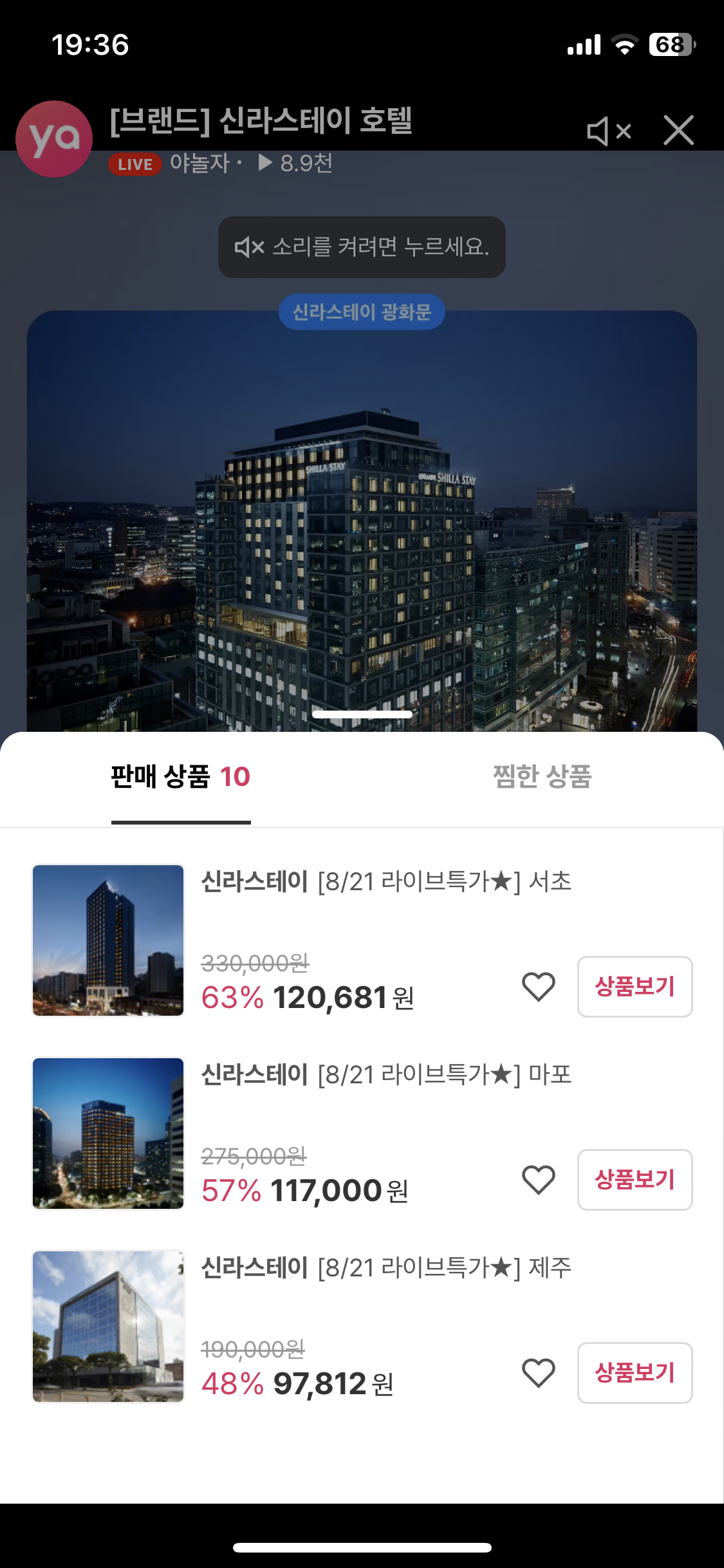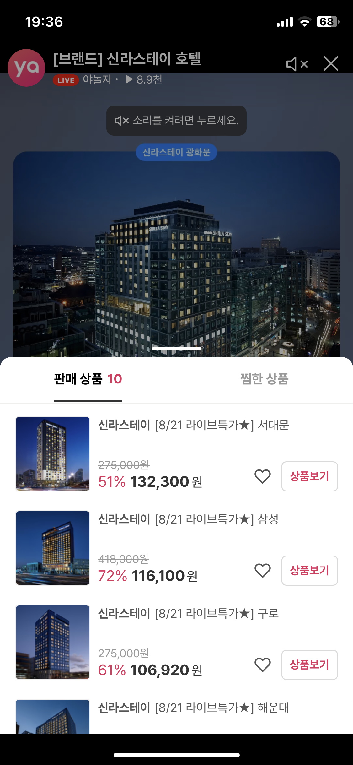 1. 야놀자 라이브방송 - 전국 신라스테이 호텔